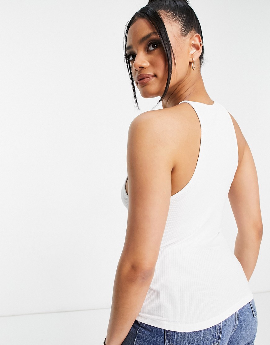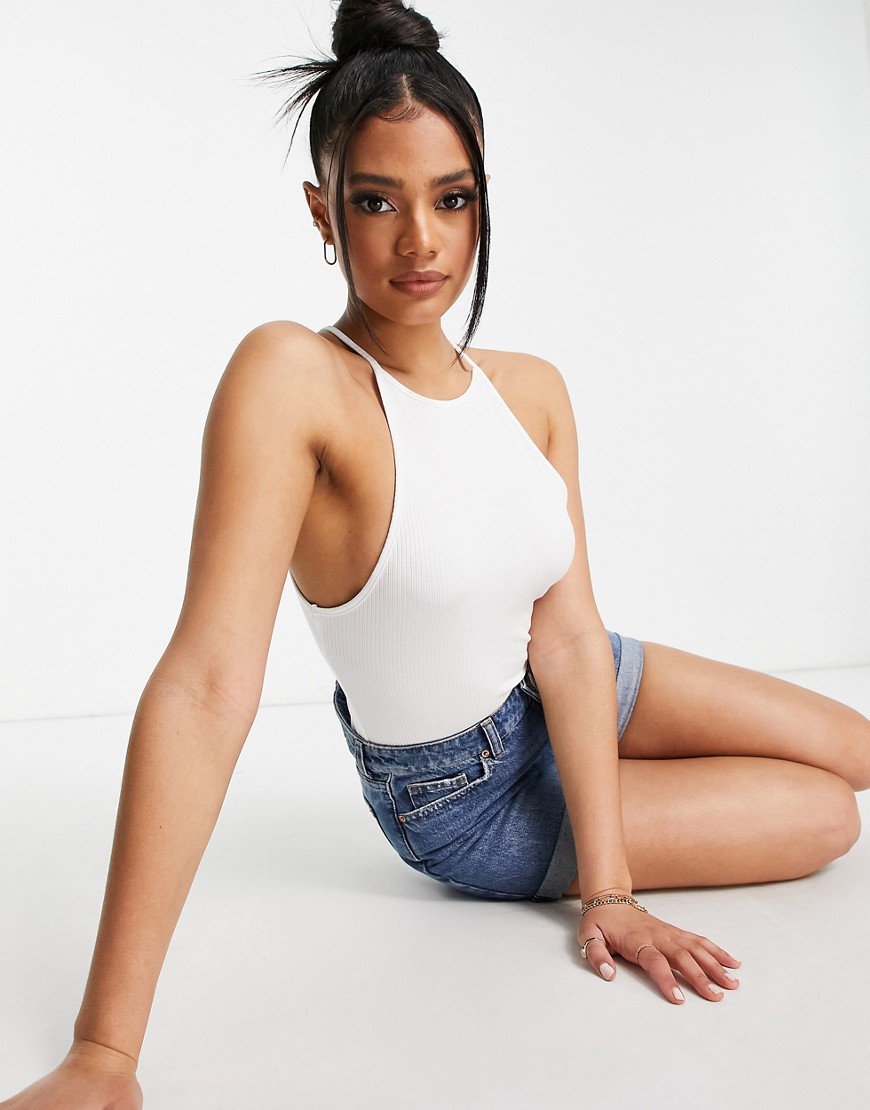 Biały top z zabudowanym dekoltem i głębokimi wycięciami 36