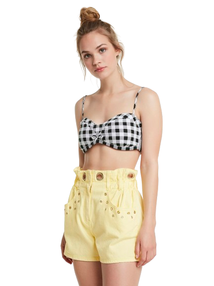 Bik Bok Elsa damskie żółte spodenki z ozdobnymi kółkami marszczone w pasie 34