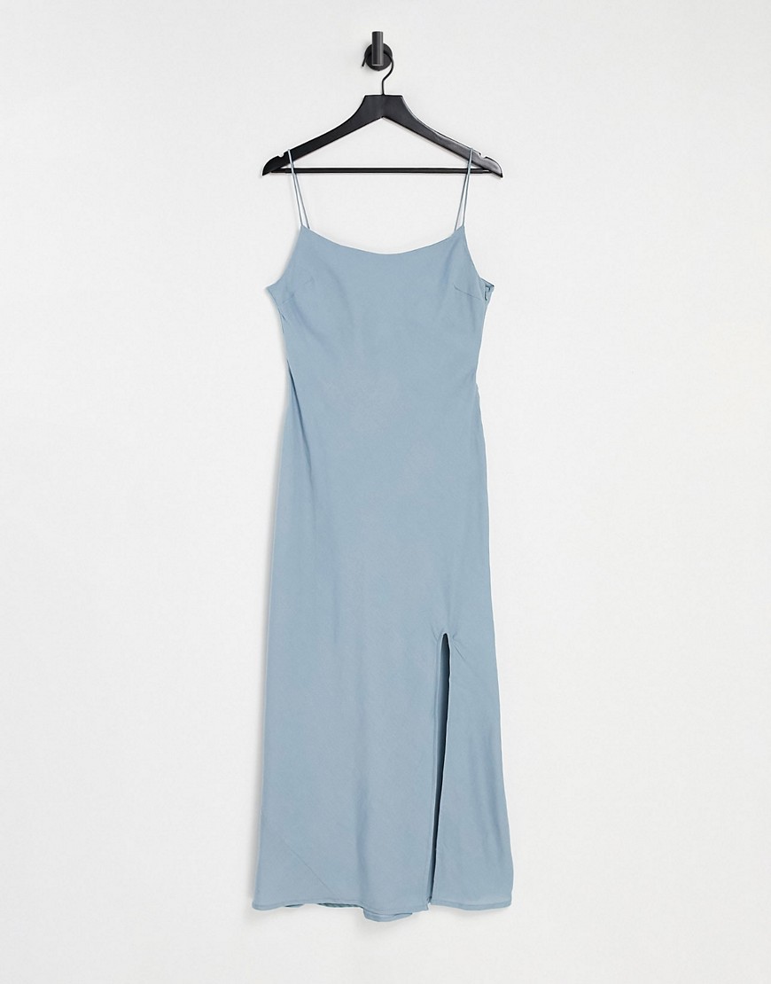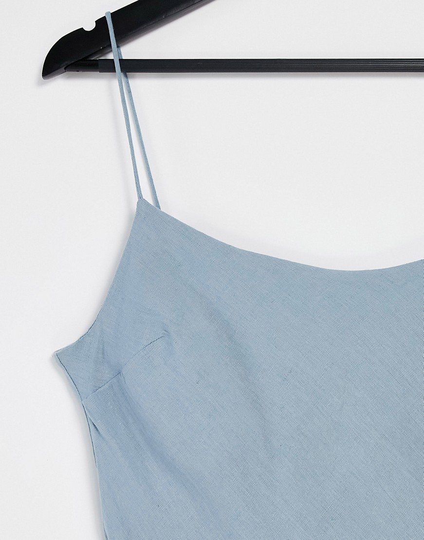 Błękitna lniana sukienka maxi na ramiączkach 34