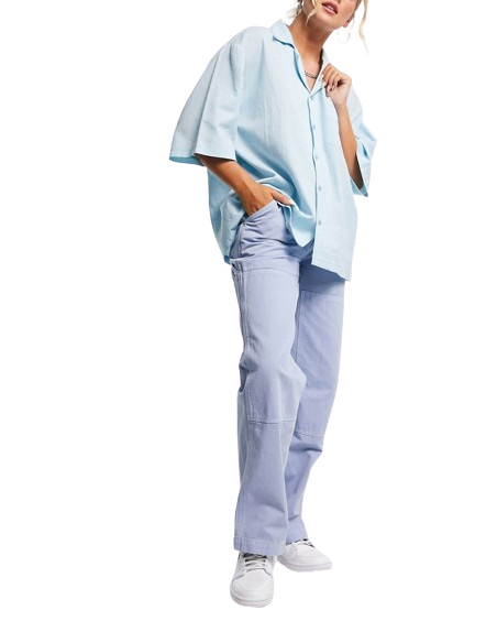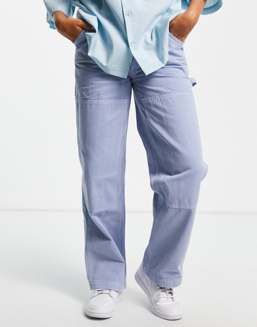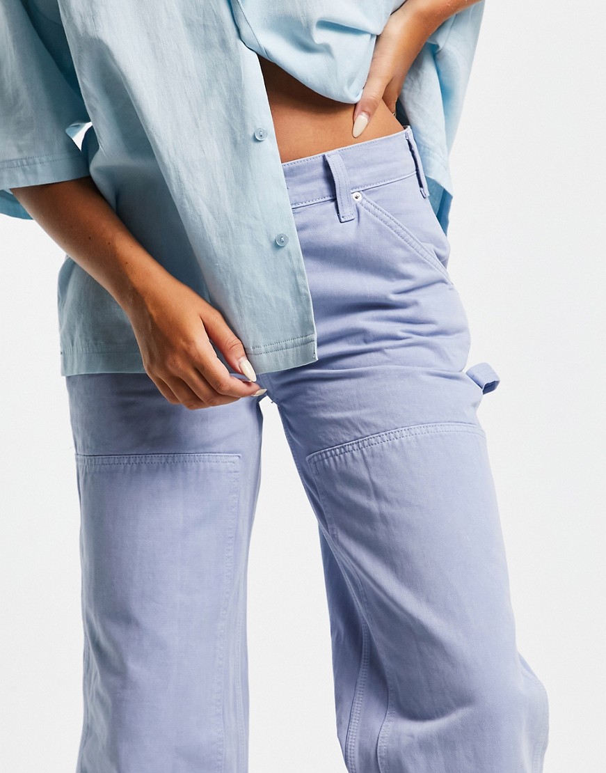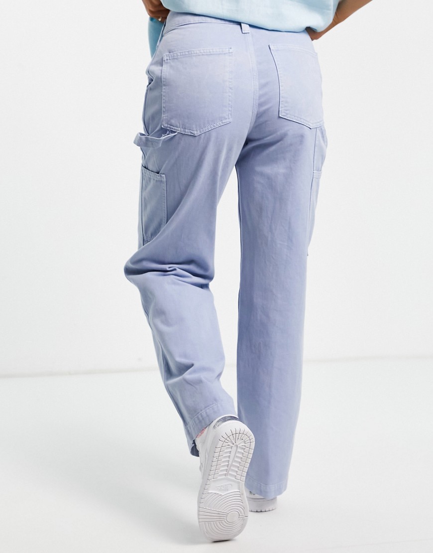 Błękitne pastelowe damskie spodnie proste nogawki przeszycia 34