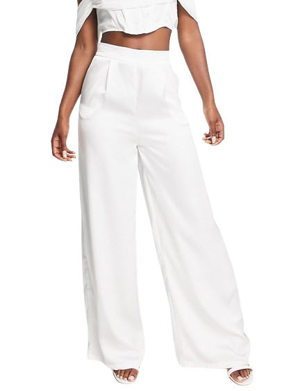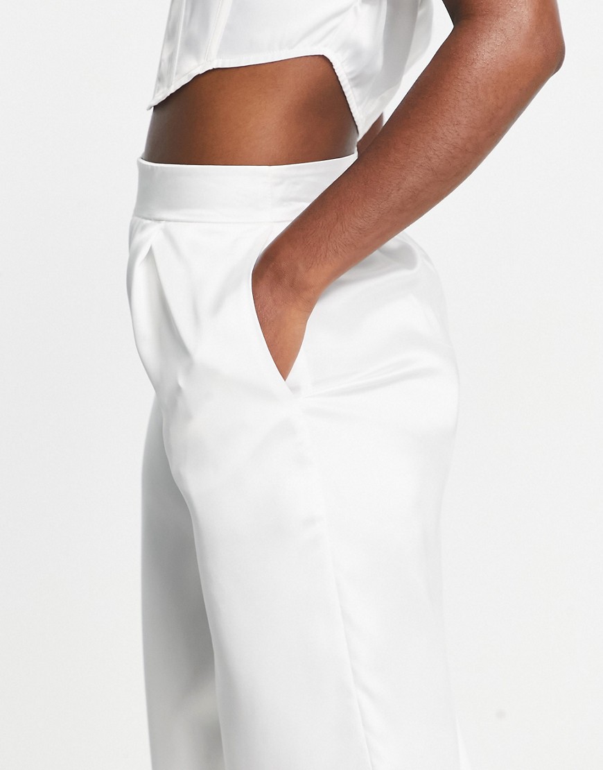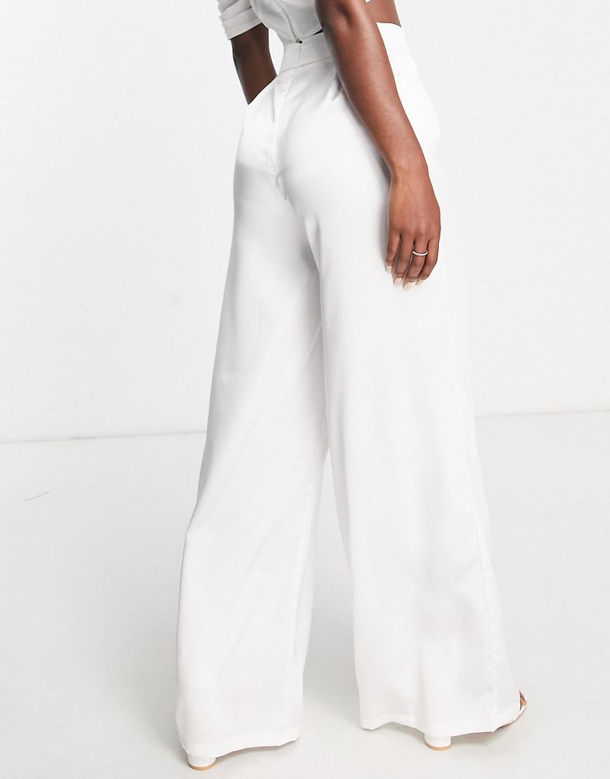 Blume Bridal białe satynowe spodnie z szerokimi nogawkami defekt 44