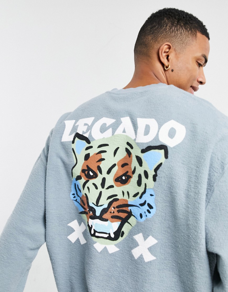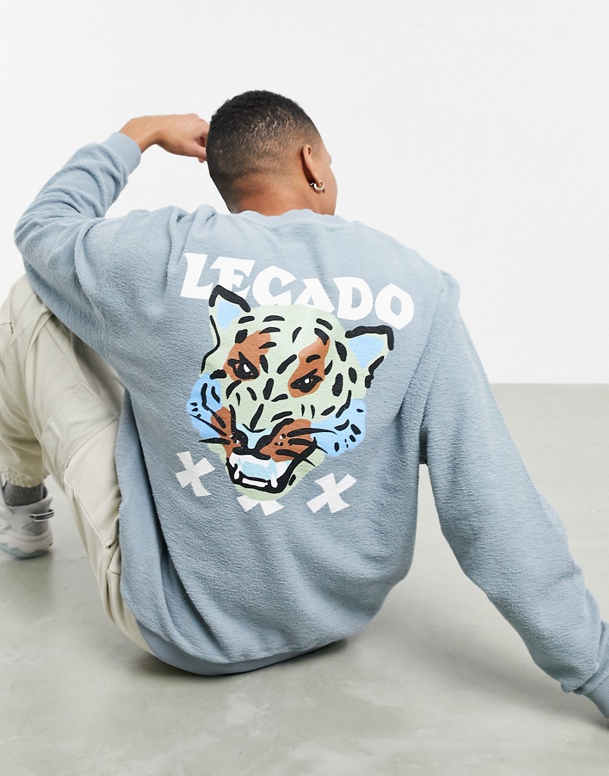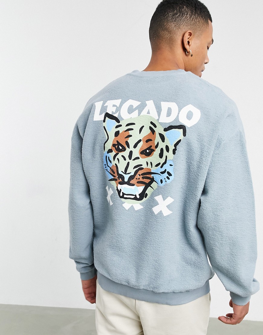 Bluza oversize z polarem na lewej stronie, efektem sprania i nadrukiem tygrysa na plecach M