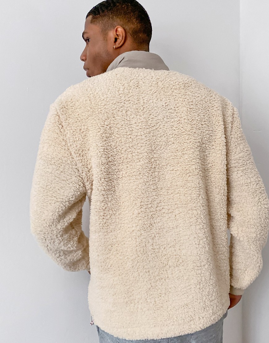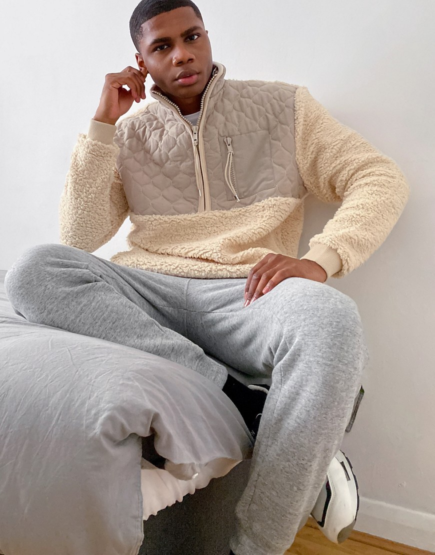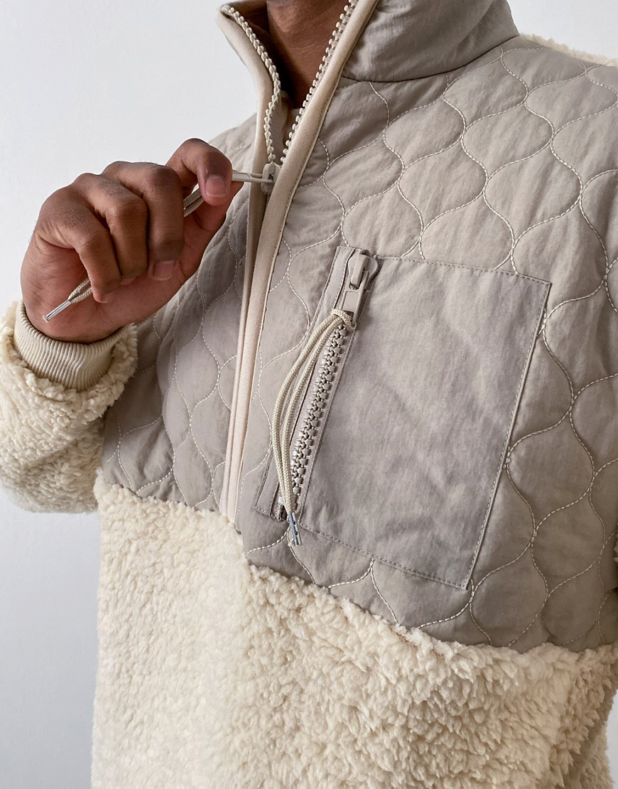 Bluza oversize ze sztucznego kożuszka z suwakiem pod szyją i pikowanymi nylonowymi wstawkami M