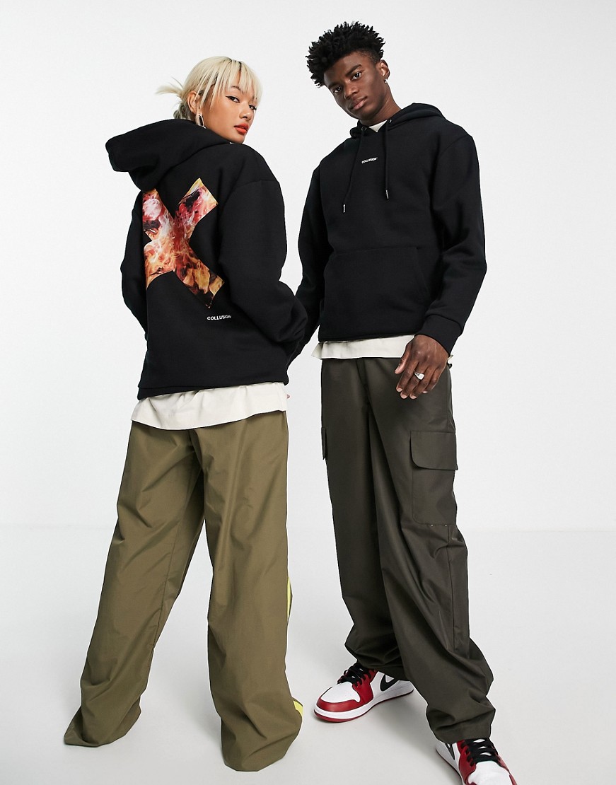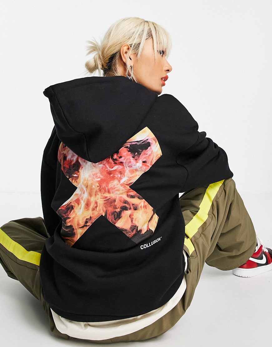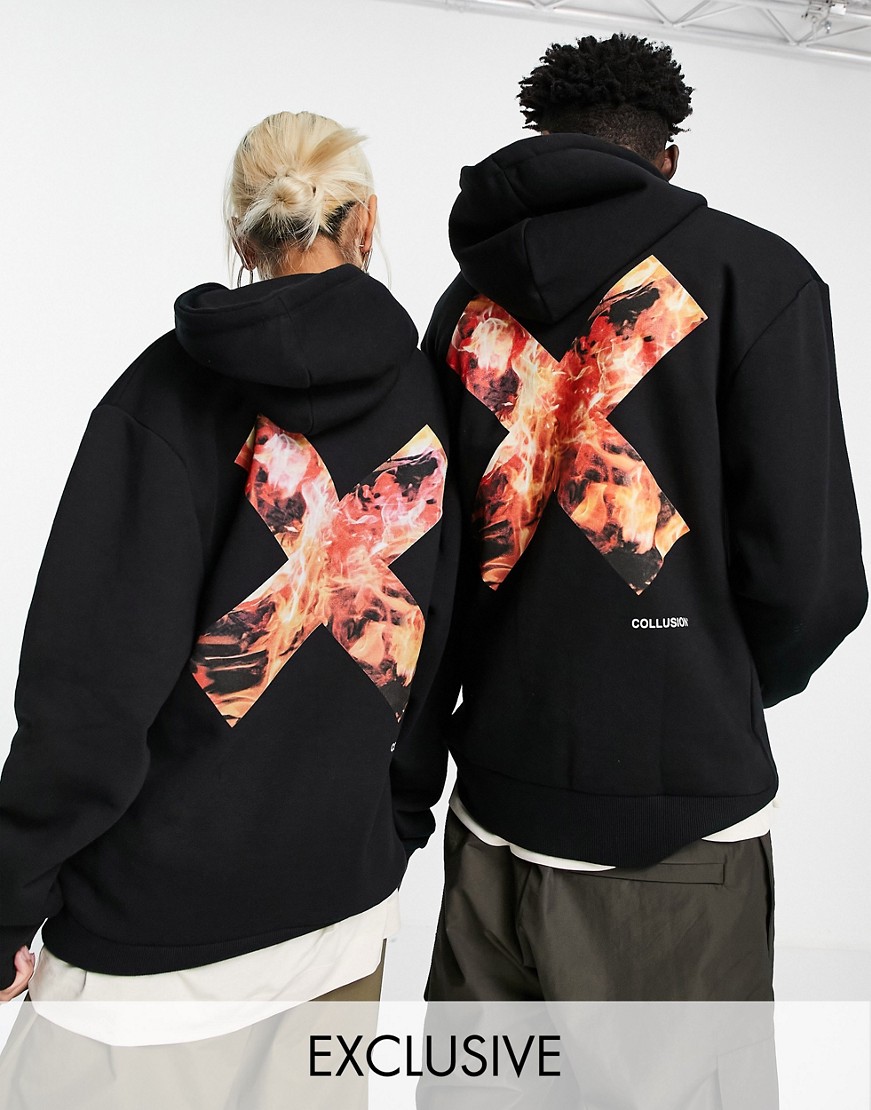 Bluza z kapturem unisex z nadrukiem logo imitującym płomienie XS