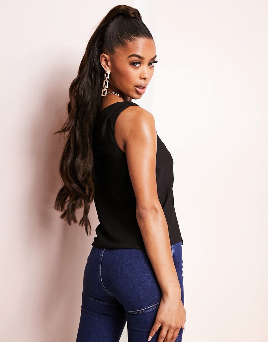 Bluzka damska czarna z opadającym ramiączkiem 46