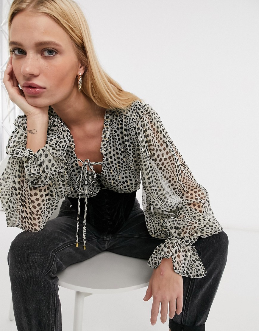 - głęboki dekolt w kształcie litery V z wiązaniem
