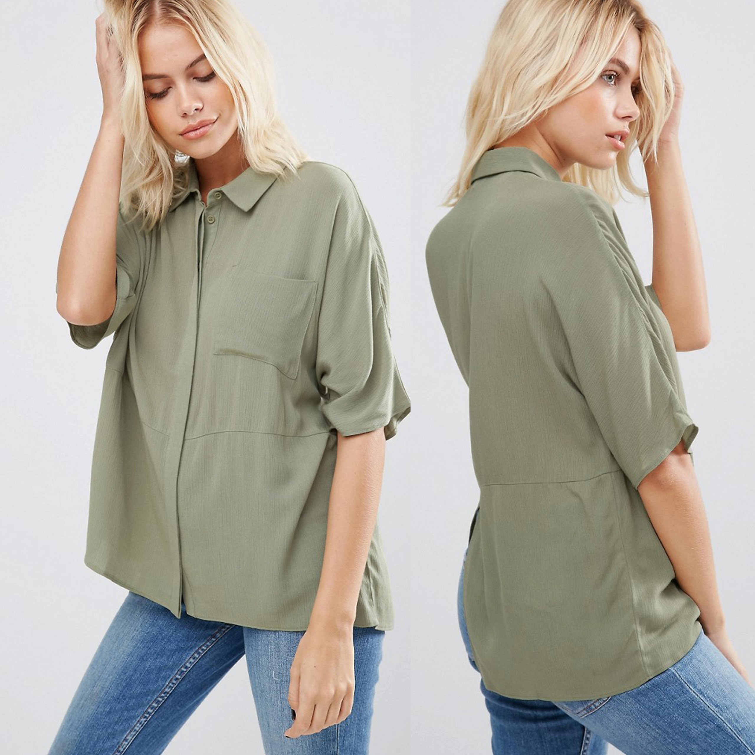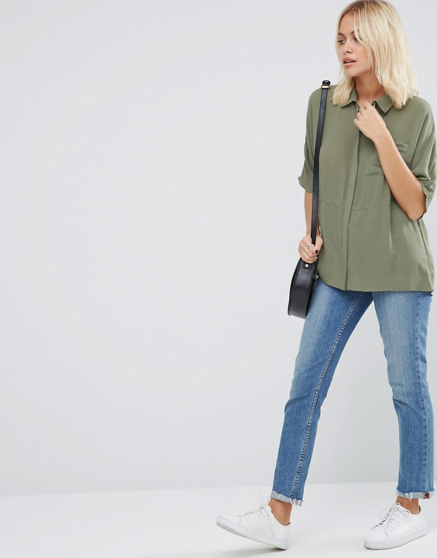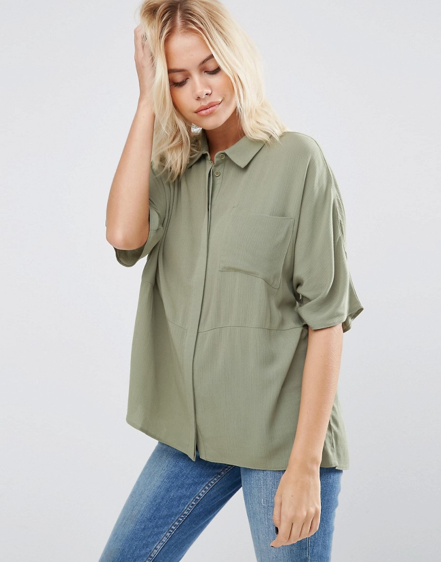 ASOS Bluzka koszulowa kołnierzyk khaki