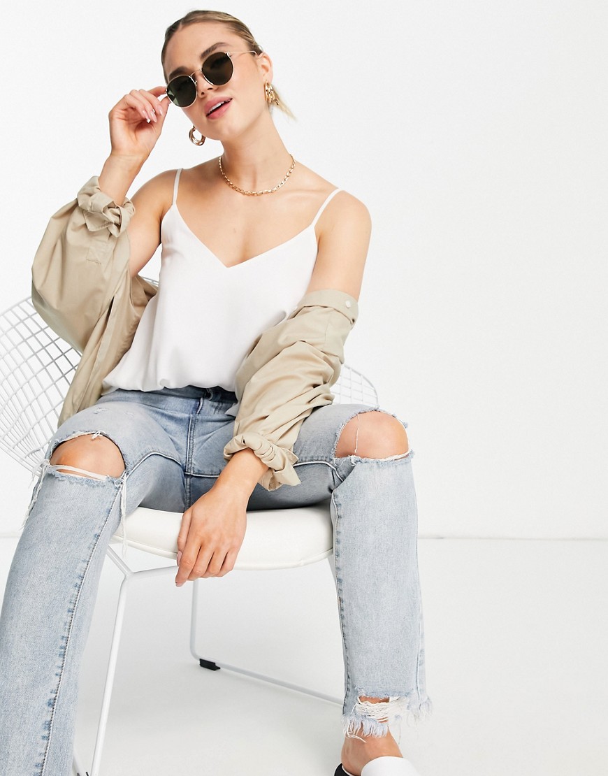 Bluzka na ramiączkach z dekoltem V ivory 44