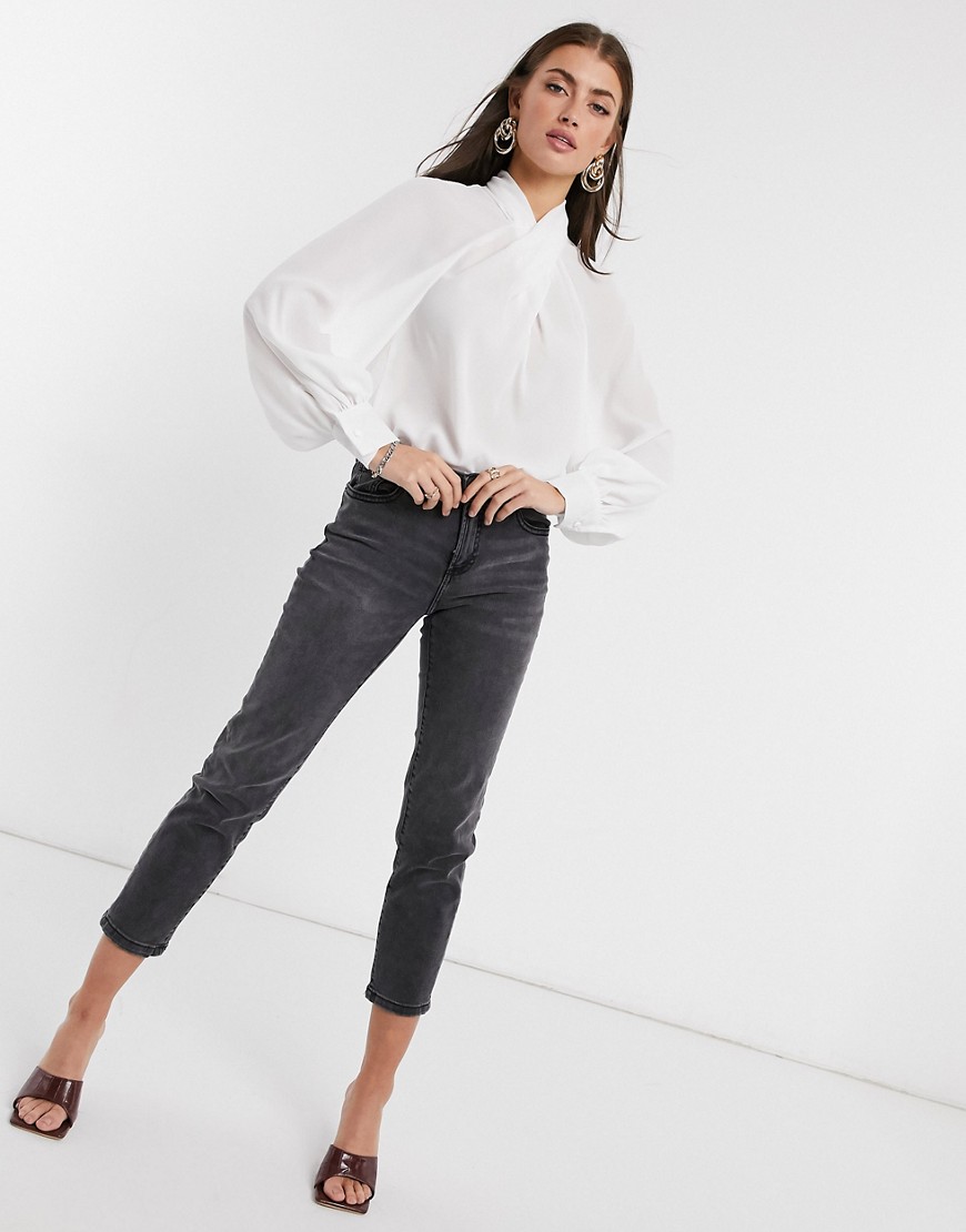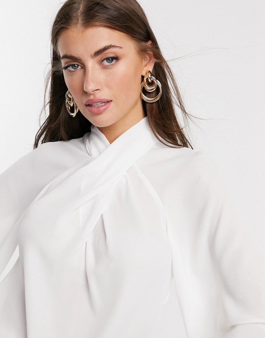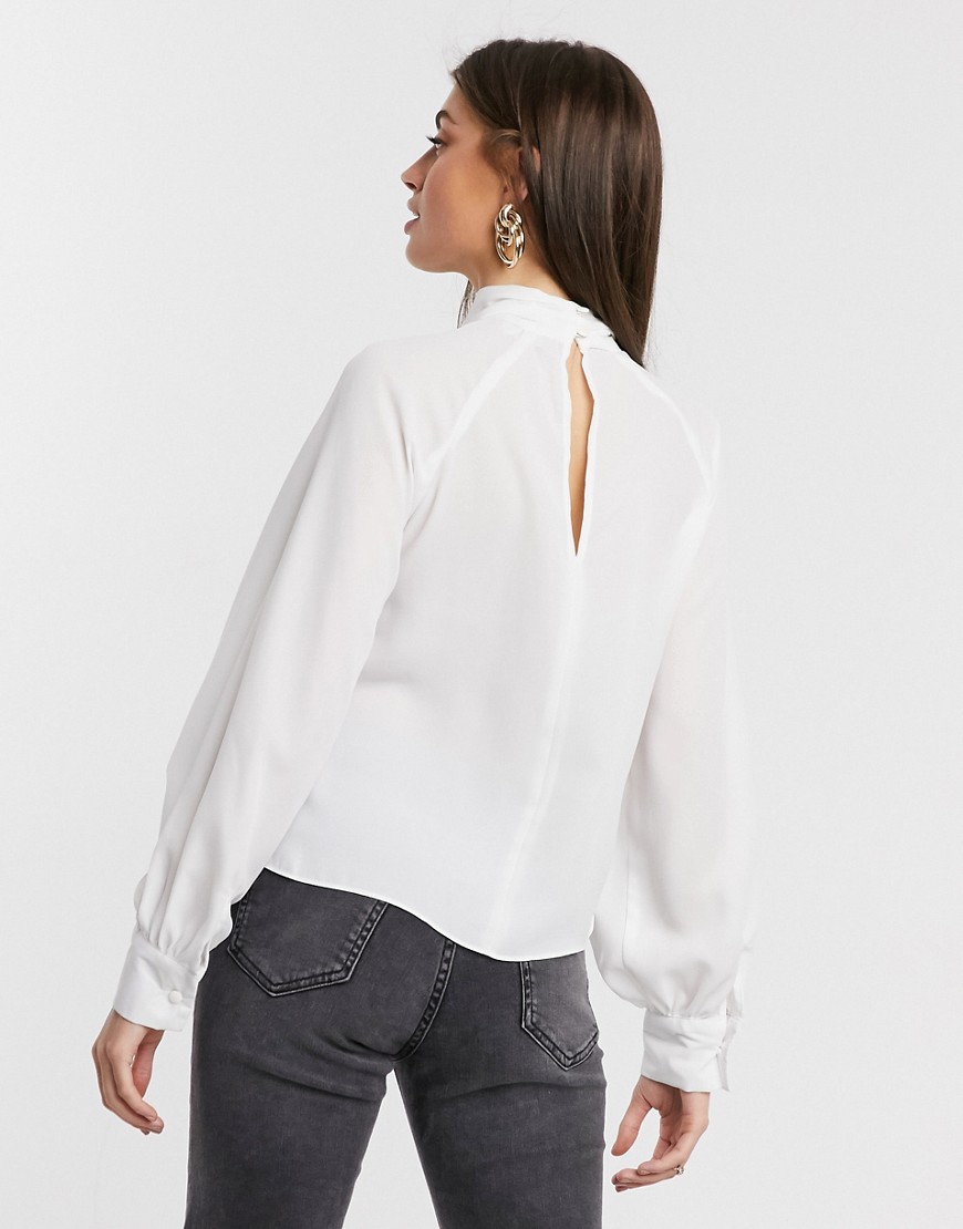 Bluzka z długim rękawem i skręconym dekoltem ivory 40