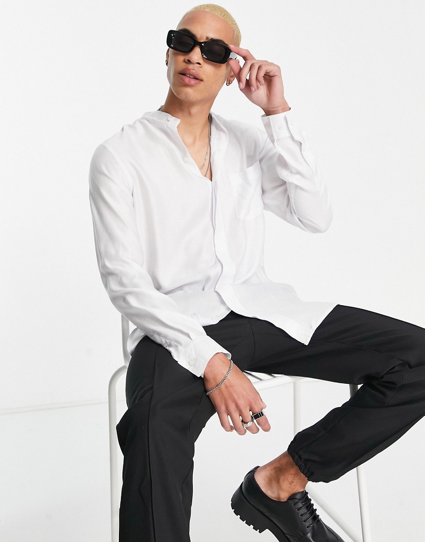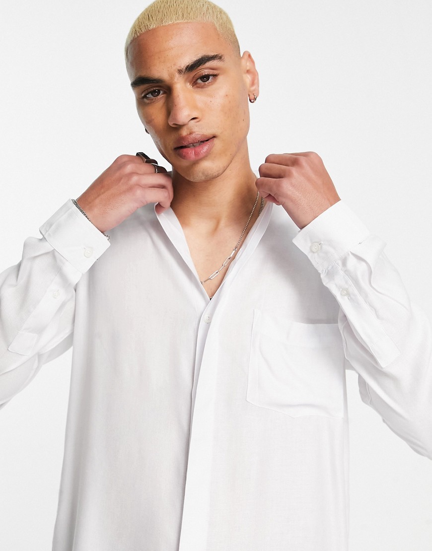 Bolongaro Trevor biała męska koszula stójka oversize defekt L