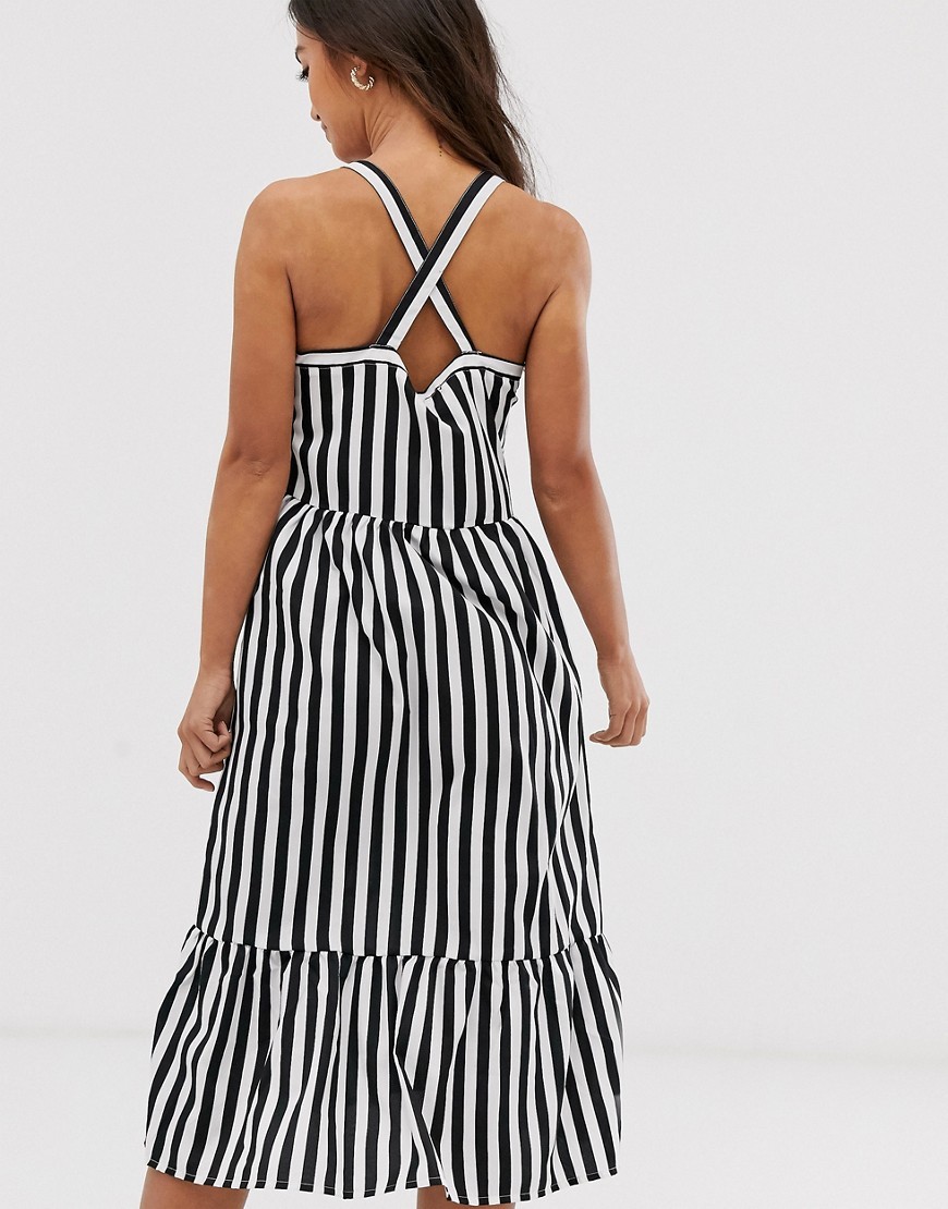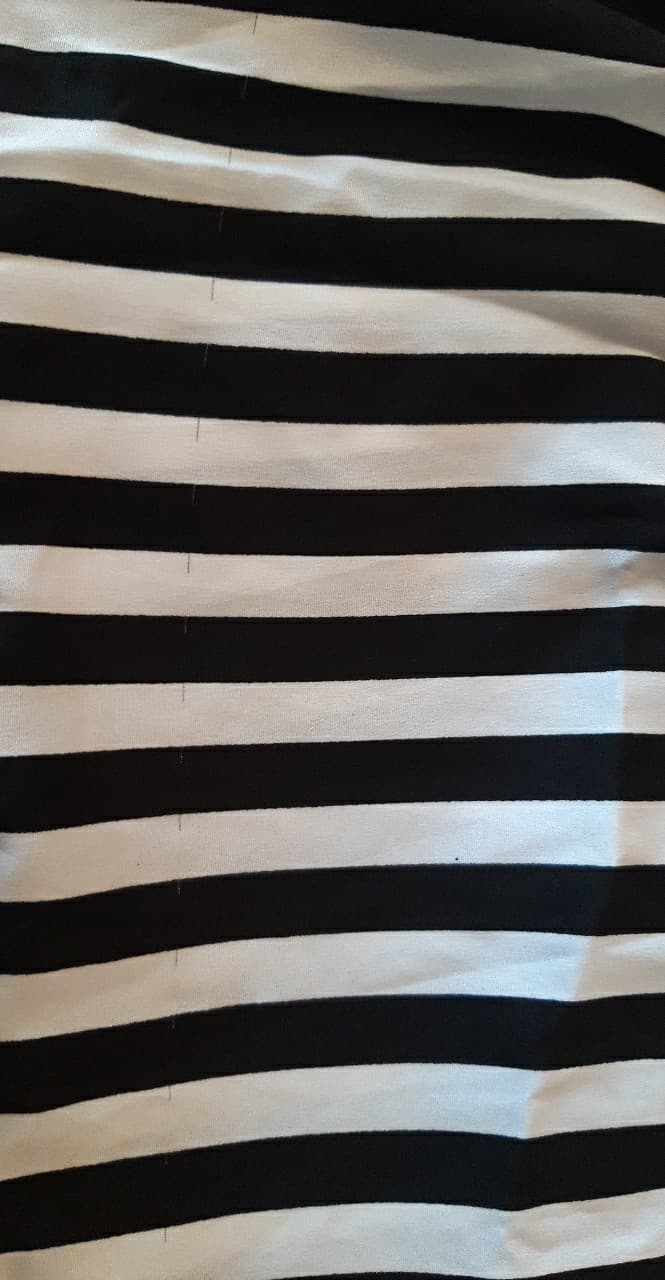 - Defekt: wada fabryczna. niedobarwiona nitka z przodu pod biustem. Długość ok 6 cm, bardzo słabo widoczne ze względu na wzór w paski (zdjęcie)