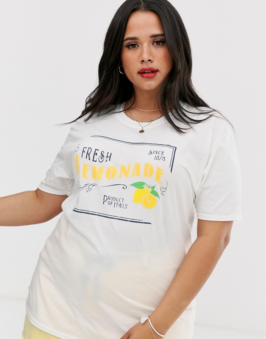 boohoo Biały T-shirt plus size napis lemoniada 46