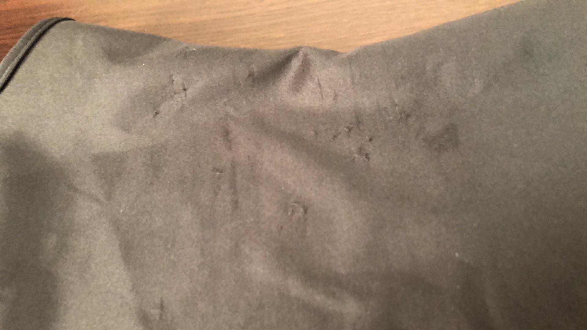 - Defekt: Zaciągnięcie materiału koło dekoltu przód, zdjęcie w galerii