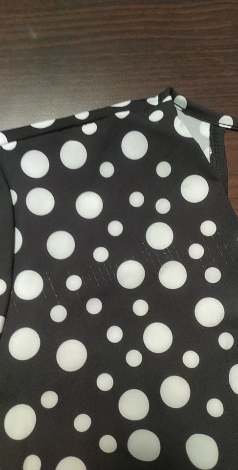 • defekt : zaciągnięte nitki przy dekolcie, zdjęcie w galerii produktu