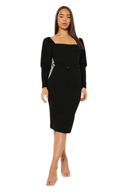 Boohoo czarna dopasowana elegancka sukienka midi defekt XL