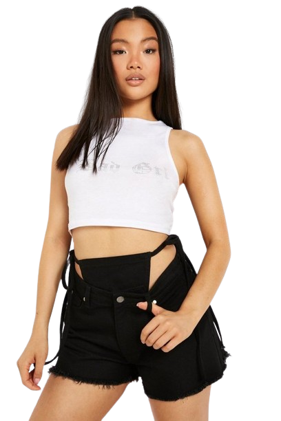 Boohoo czarne jeansowe szorty z wiązaniem w pasie 34