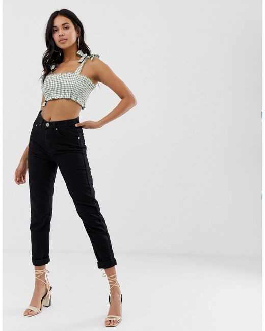 boohoo czarne spodnie jeansy typu mom defekt M 38