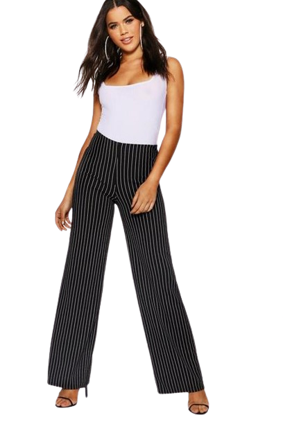 Boohoo czarne spodnie w paski wide leg 38