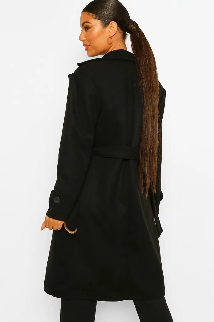 Boohoo damski czarny płaszcz jesienny midi S