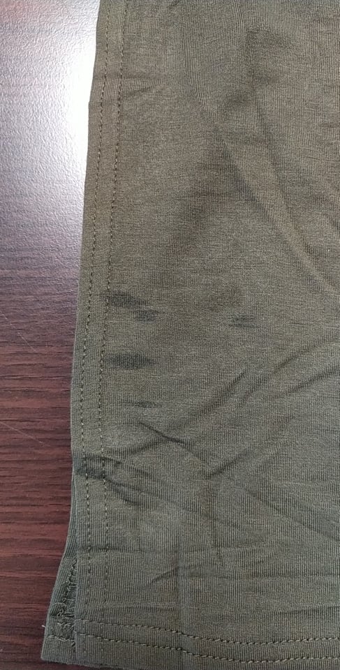 - defekt: odbarwienie materiału z tyłu przy szwie, zdjęcie w galerii produktu