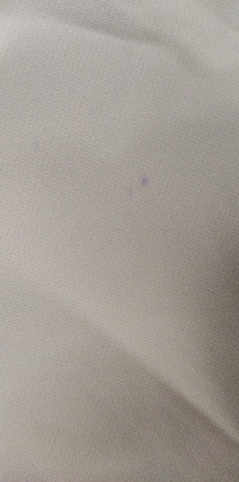 • Defekt: mało widoczne zabrudzenie u góry z prawej strony, przebarwienia na materiale z tyłu w kilku miejscach (zdjęcia)