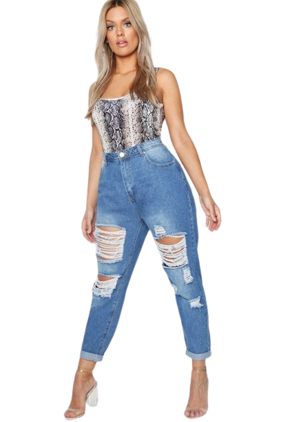 Boohoo damskie niebieskie spodnie jeansowe mom plus size 48