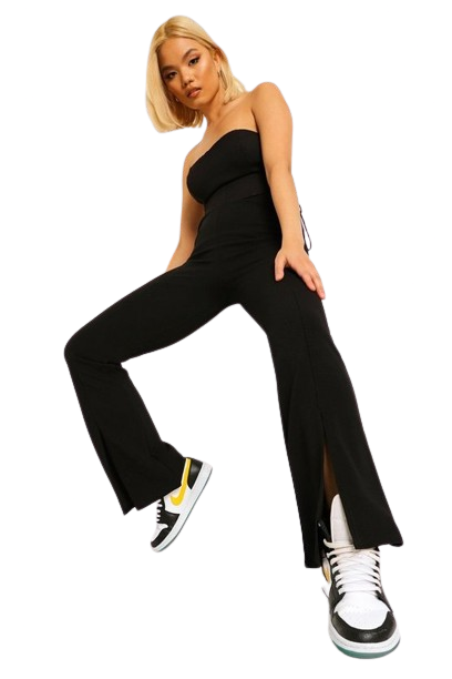 Boohoo dżersejowe flary damskie z rozcięciem na nogawce czarne 40