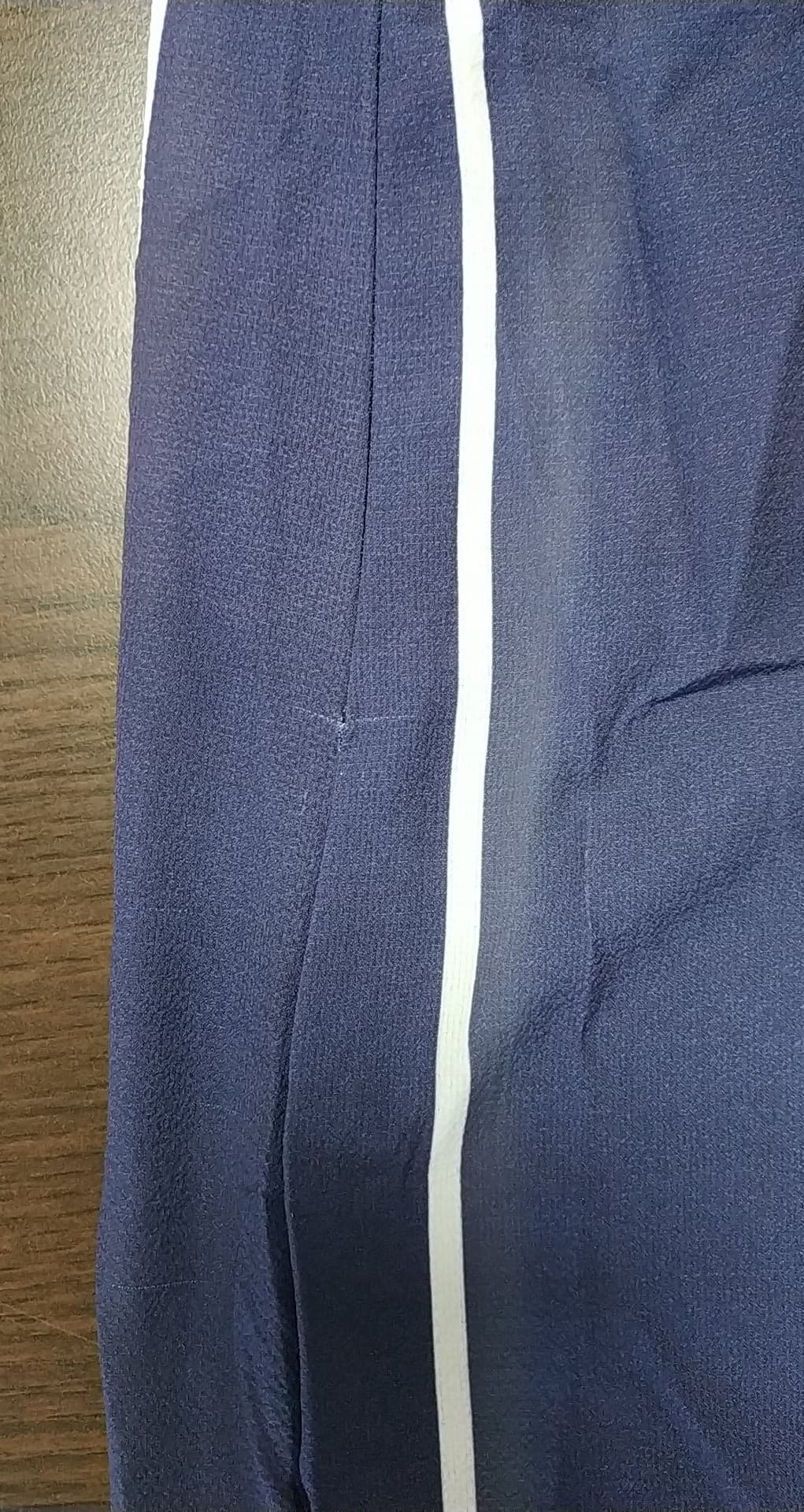 - defekt zaciągnięte nitki przy szwie bocznym nogawki