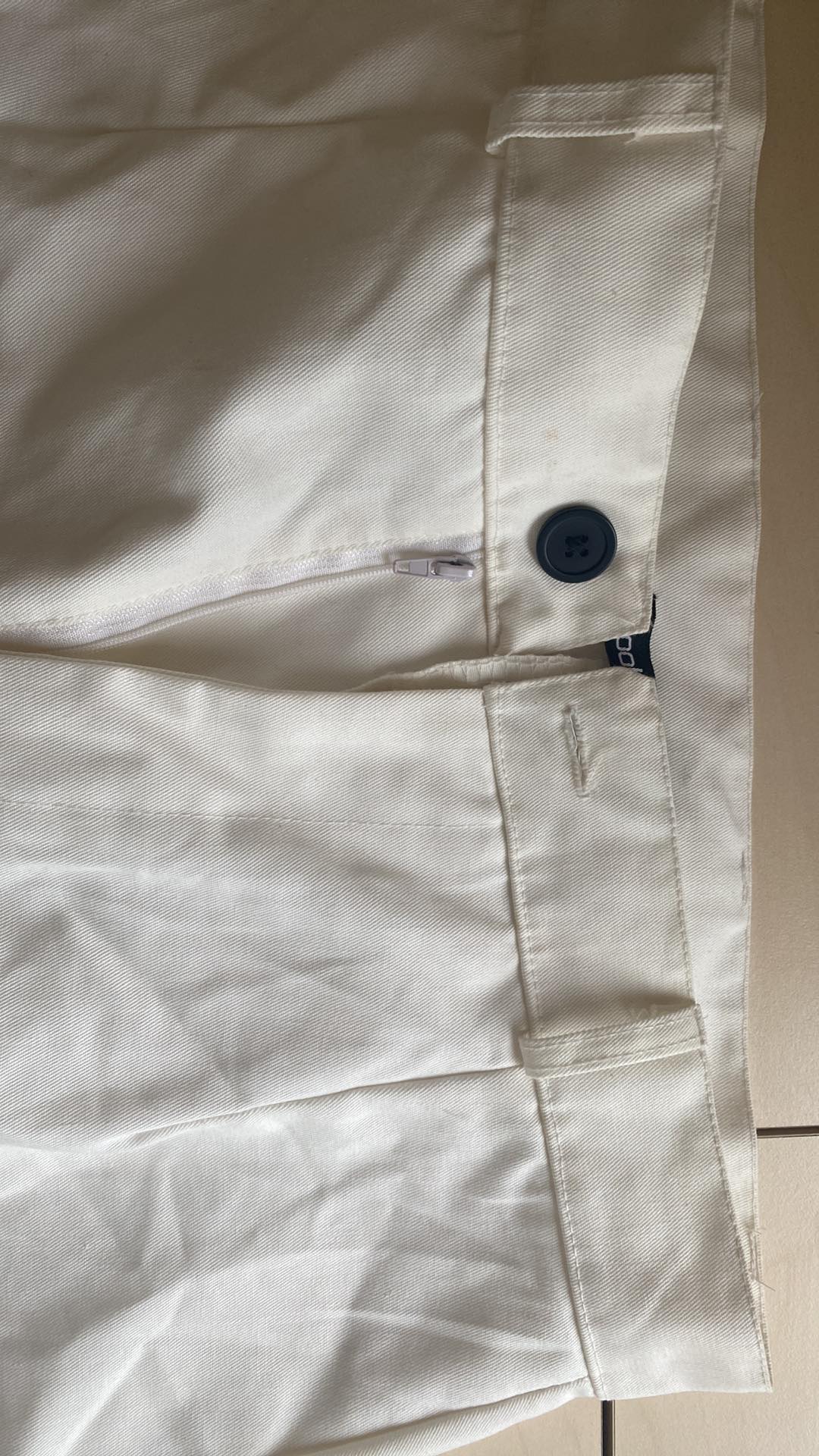- defekt: zabrudzenie pas przód, tył, zabrudzenie tył okolice kroku, zżółknięty materiał, zepsuty zamek