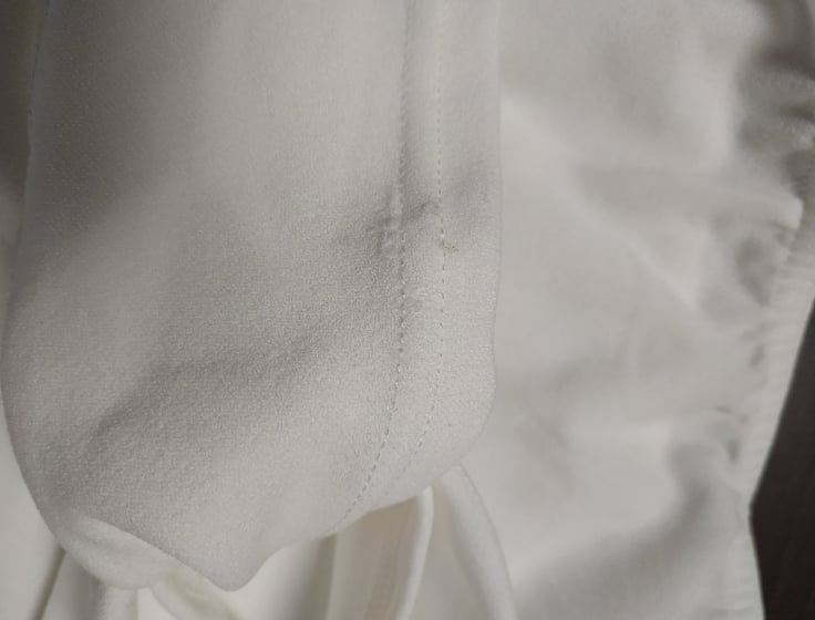 - defekt zaciągnięty materaił i niewielka dziurka z przodu na jednym z pasków