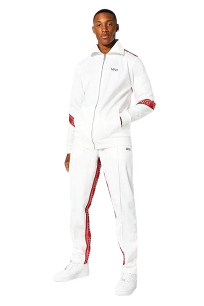 - Czerwone wstawki z napisami na rękawach i ramionach