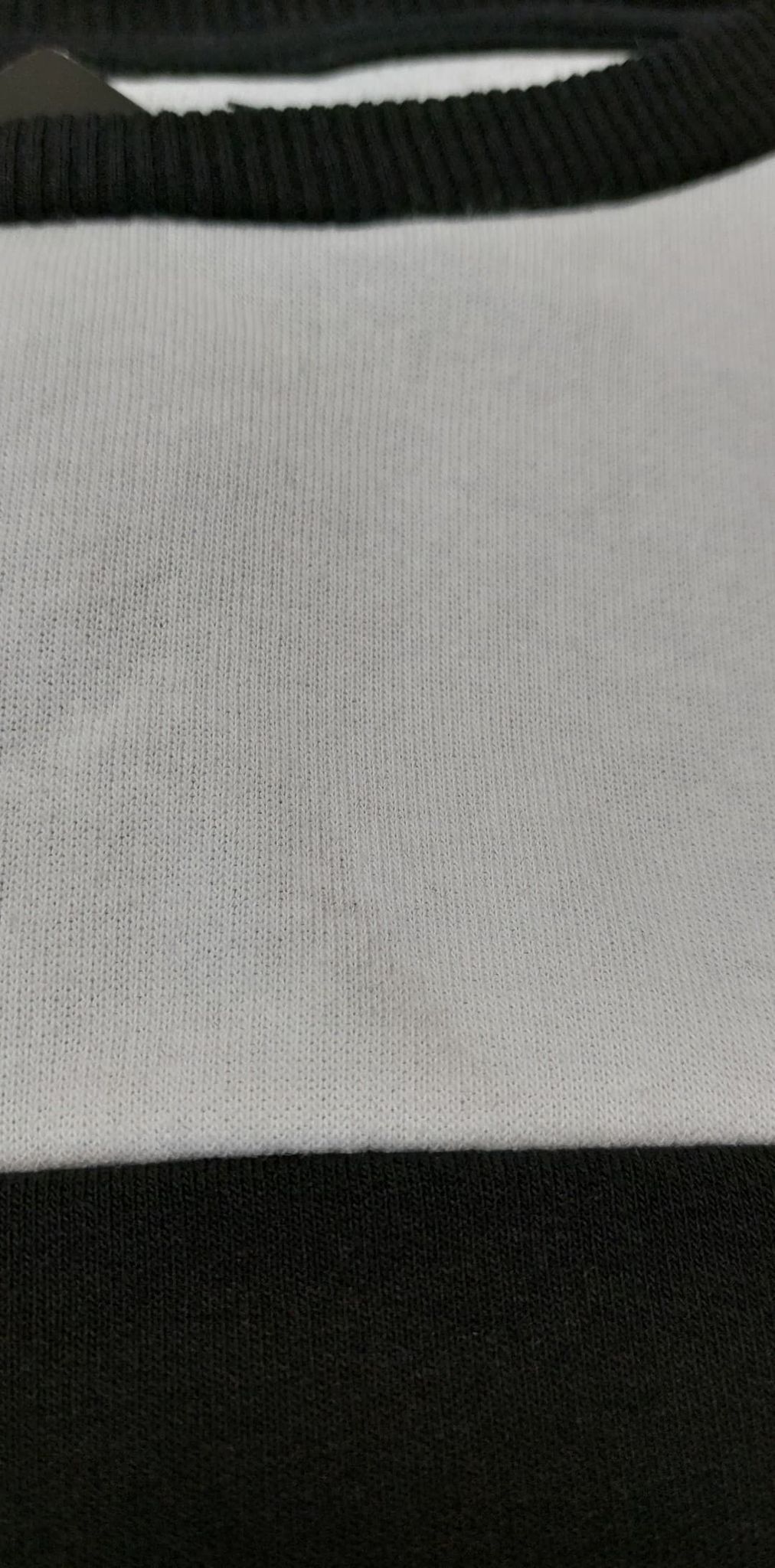 • Defektniewielkie zabrudzenie z przodu bluzy przy dekolcie, na białej części , zdjęcie w galerii produktu
