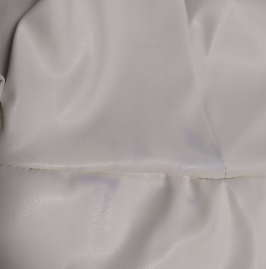 Boohoo sukienka mini z imitacji skóry kopertowa ecru defekt 44