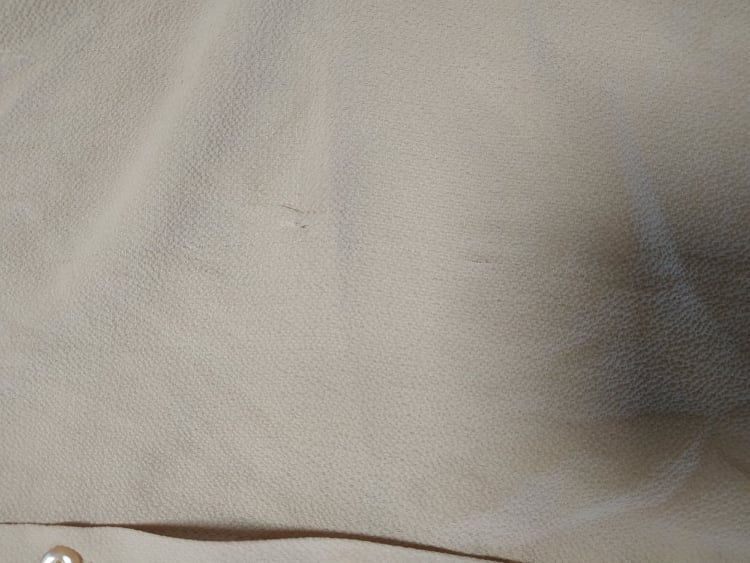 - defekt niewielkie zaciągnięcie materiału z przodu po lewej stronie plisy
