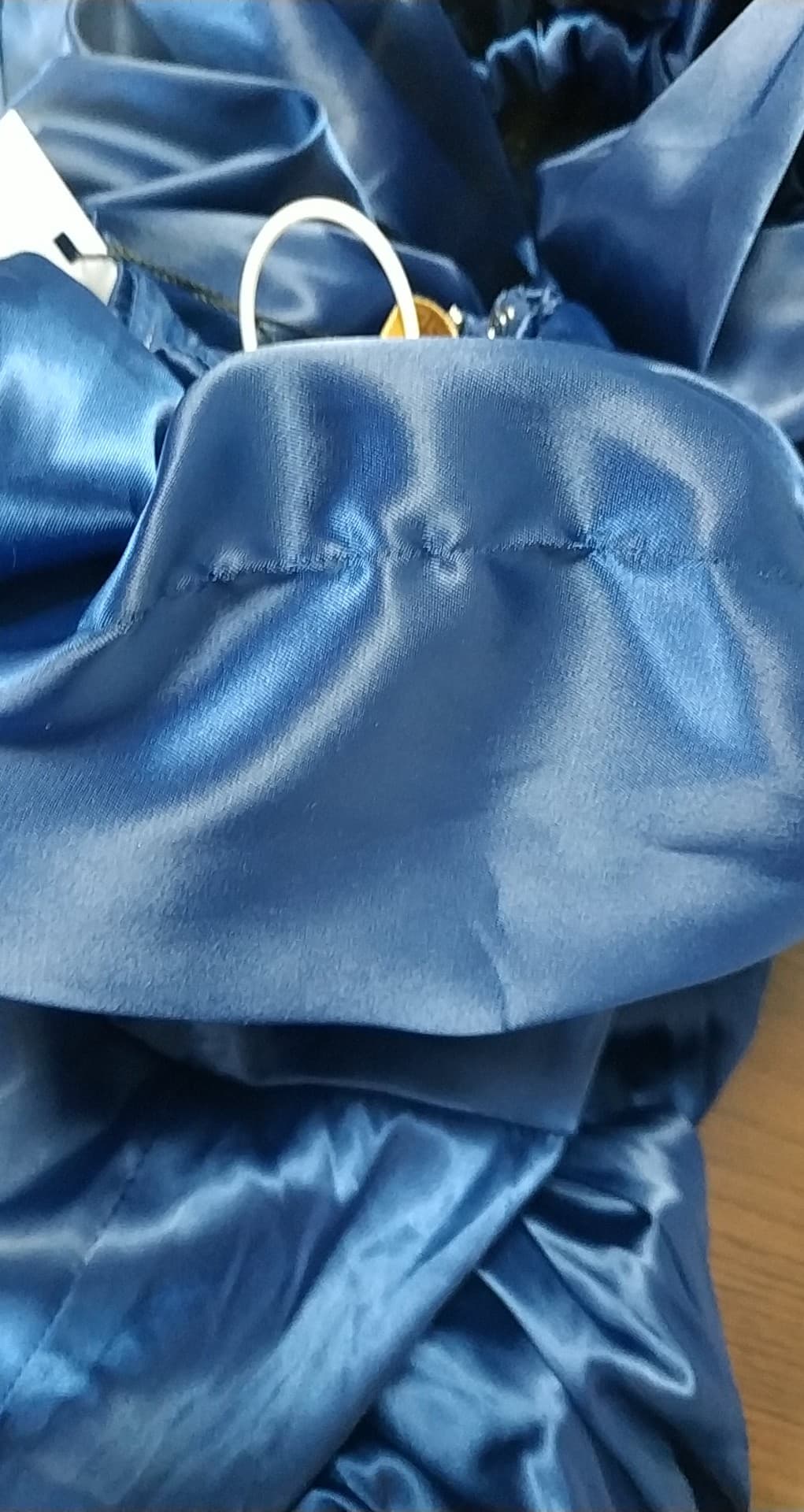 - defekt zaciągnięta nitka na falbance z tyłu