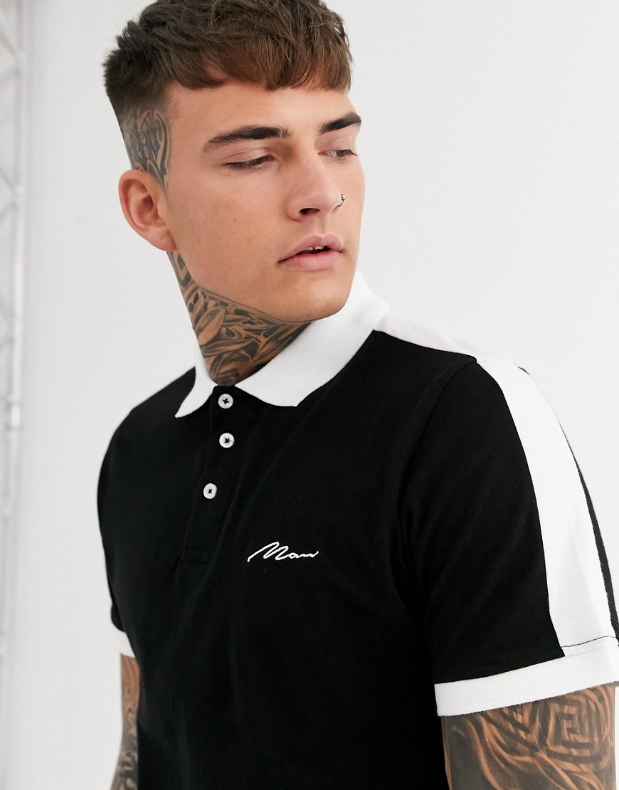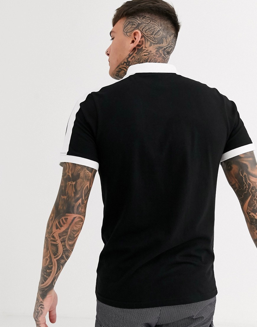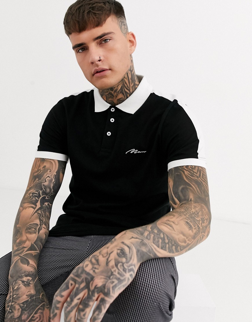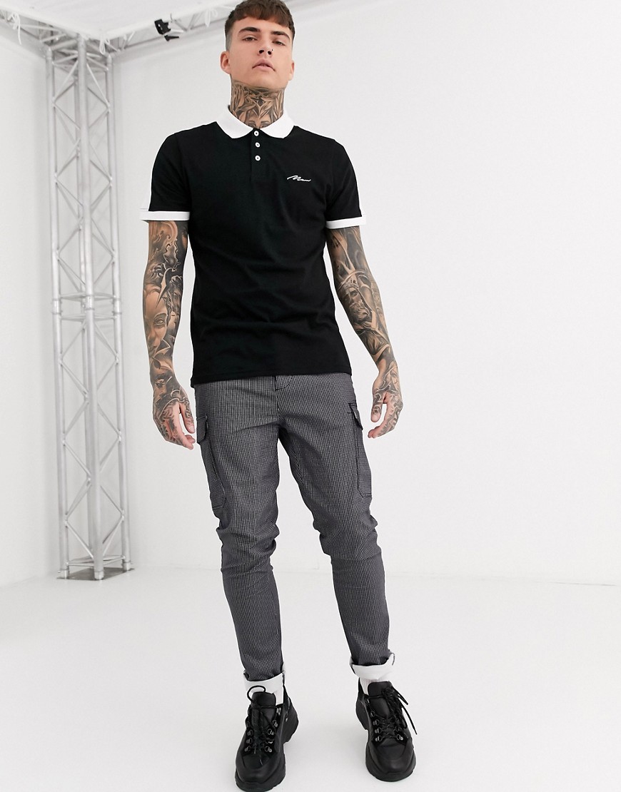 boohooMAN czarna Koszulka polo z białym kołnierzykiem XL