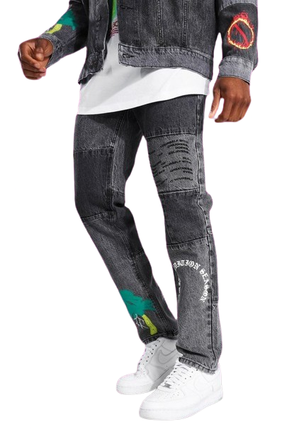 BoohooMAN czarne jeansy męskie slim fit patchwork W30