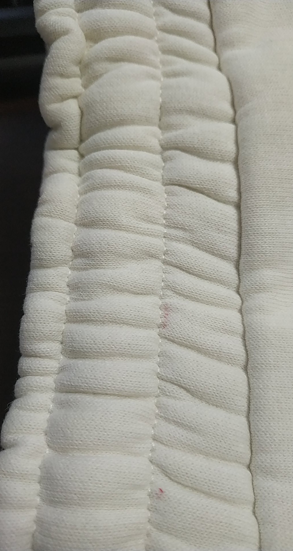 - Defekt wada wabryczna – na pasku wciągnięte czerwone nitki, zdjęcie w galerii produktu