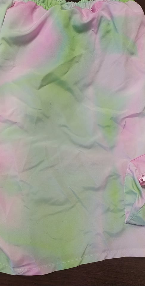 - defekt : mało widoczne wady w barwieniu z tyłu spodenek, zdjęcie w galerii produktu