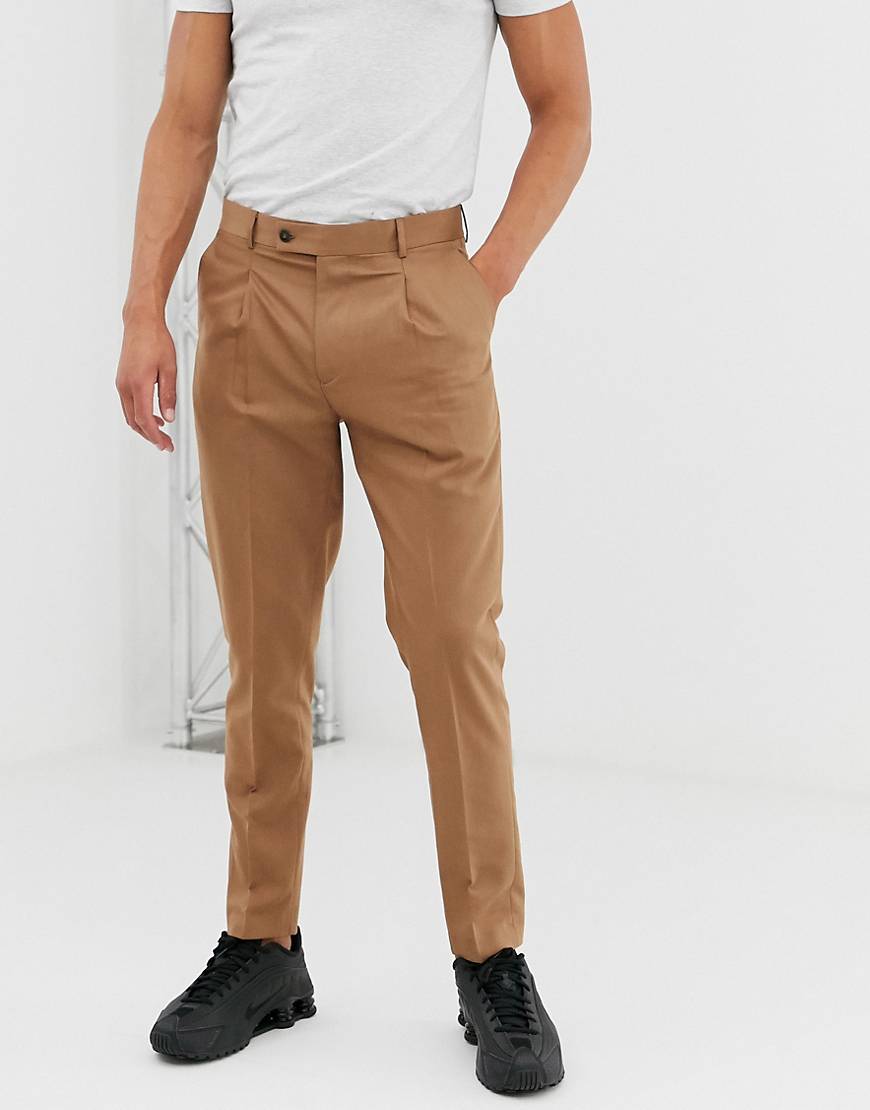 boohooMan brązowe Spodnie męskie eleganckie na co dzień W30