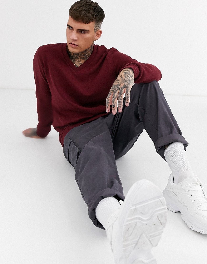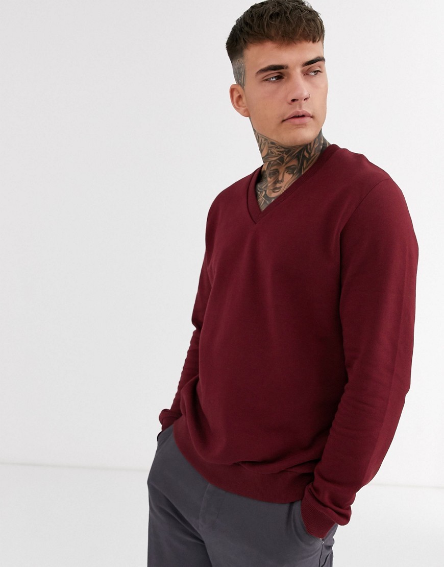 Bordowa Bluza dekolt v sweter męski defekt XXS