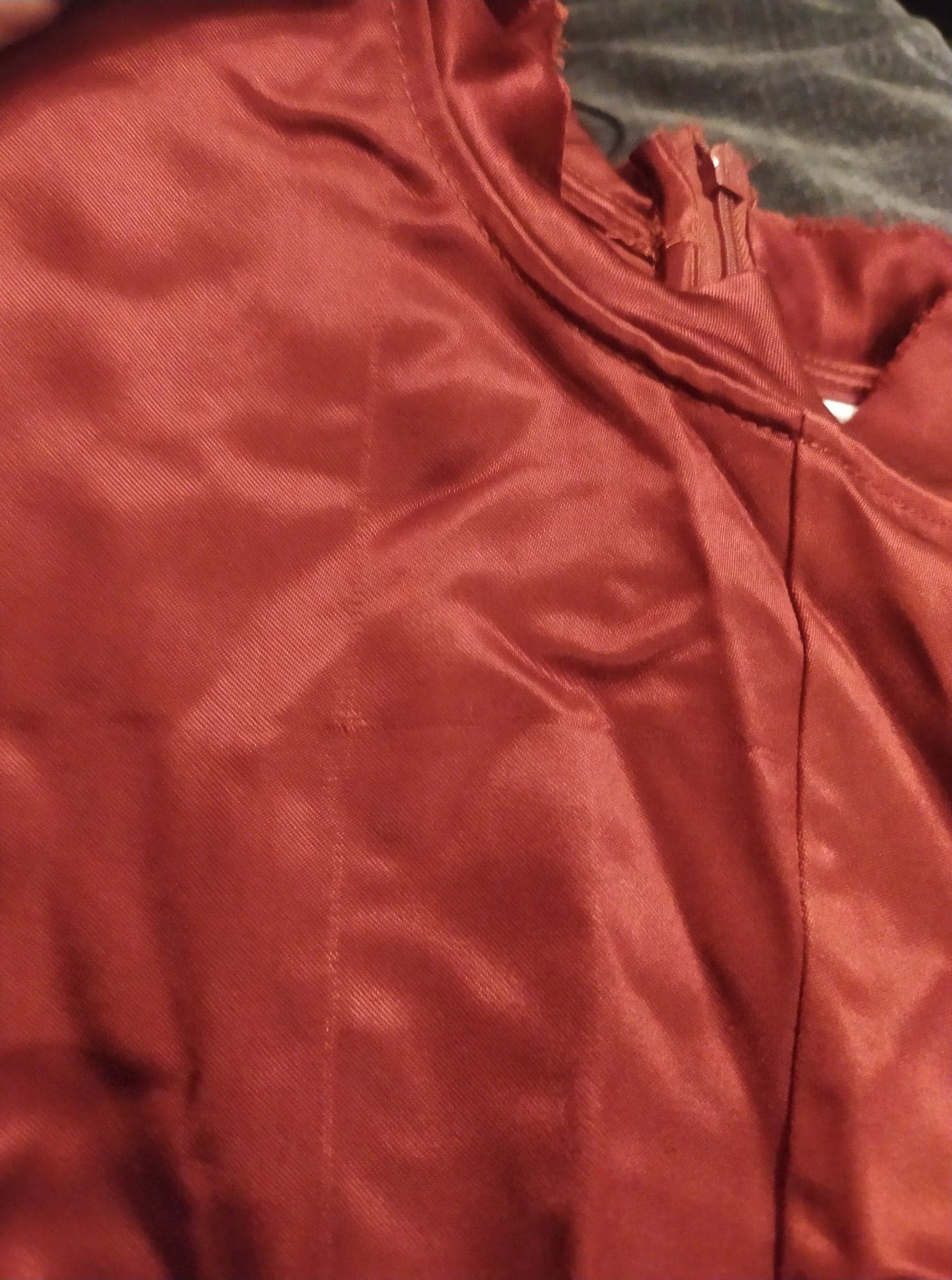 - Defekt: zaciągnięcie z przodu, od obszycia dekoltu na 26 cm (zdjęcie)