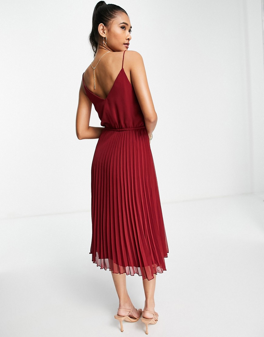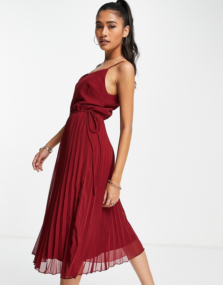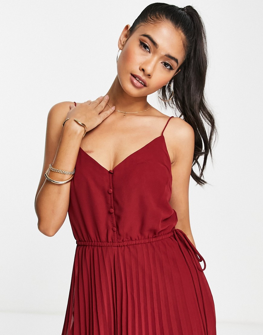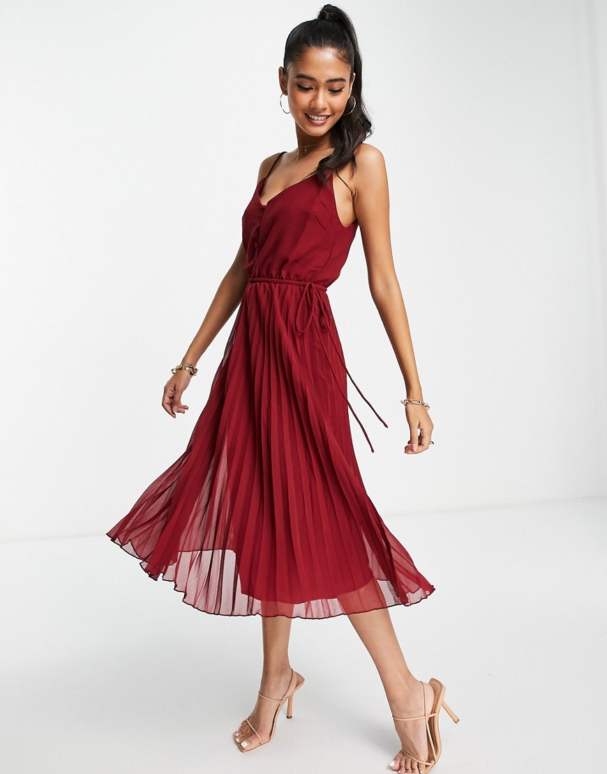 Bordowa sukienka midi na ramiączkach z guzikami z przodu 34
