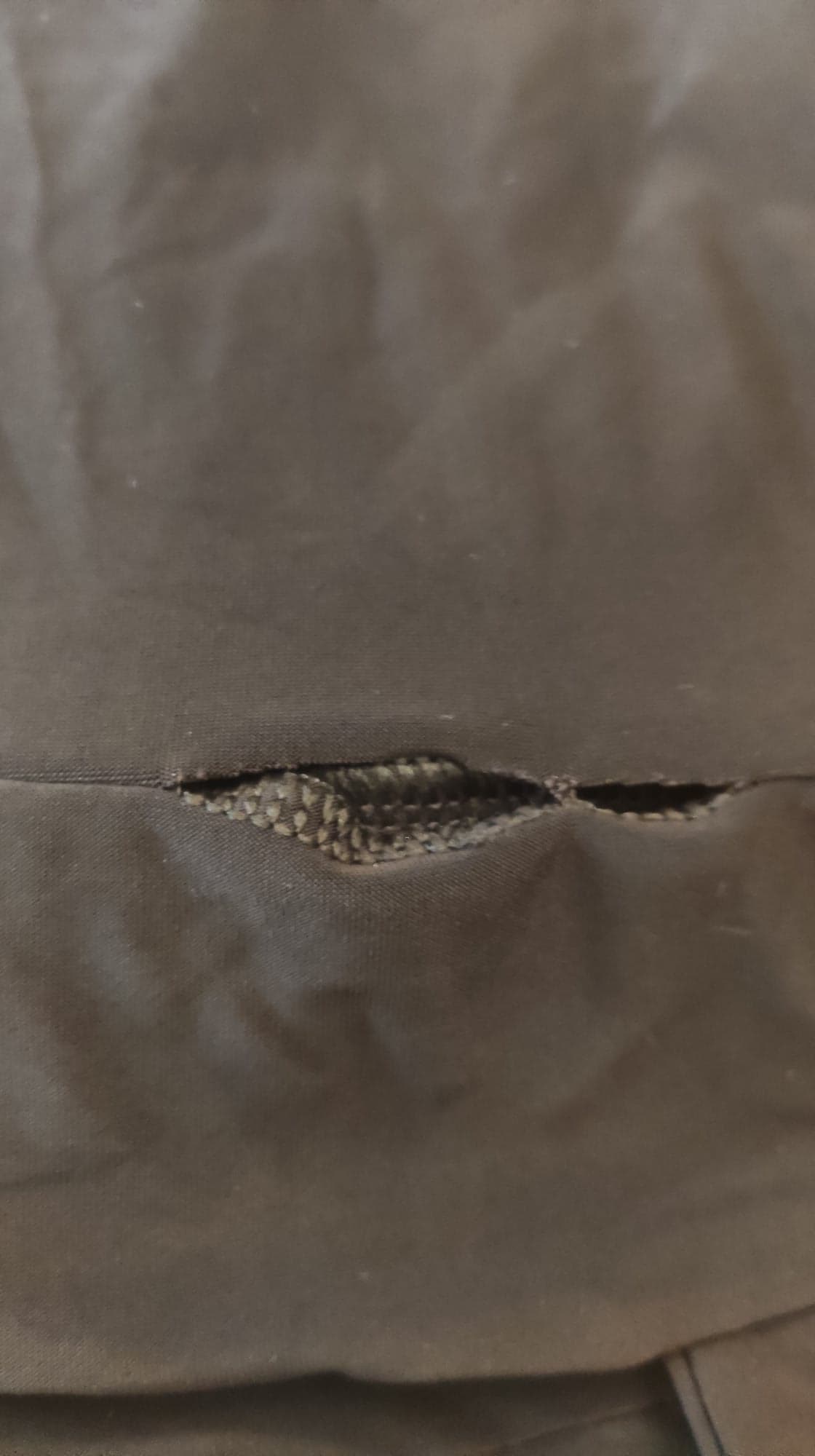 - DEFEKT: lekkie przecięcie materiału przy zamku – mało widoczne