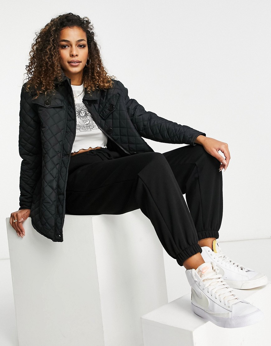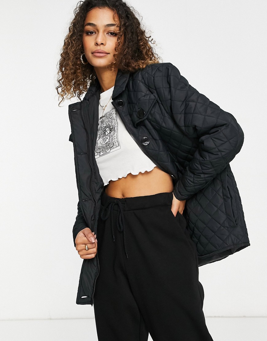 Brave Soul czarny płaszcz kurtka damska pikowana 36