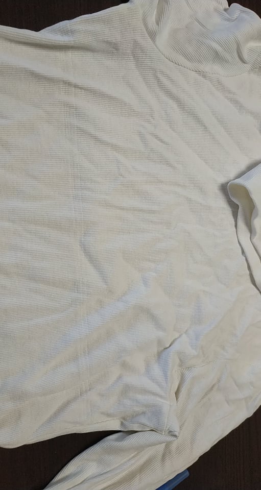 - defekt wada fabryczna – poprzeczne paski z przodu (wyglądają jak zagnieciony materiał)