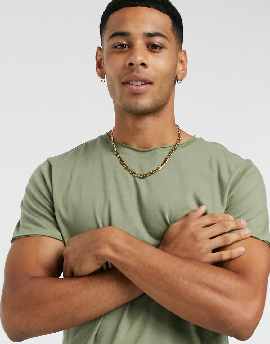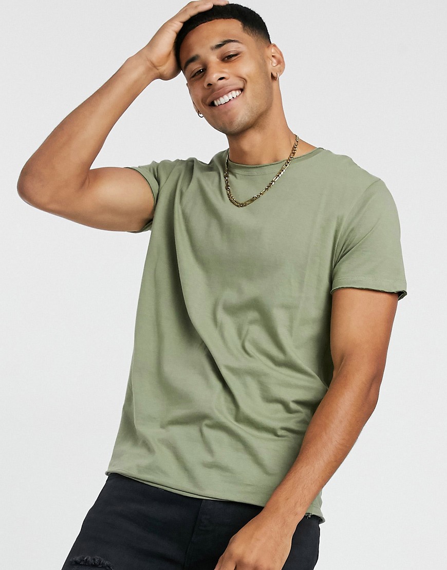 Brave Soul Miętowy t shirt z surowym wykończeniem XL