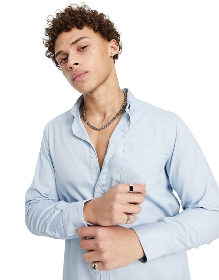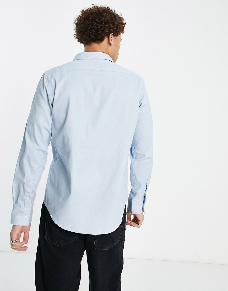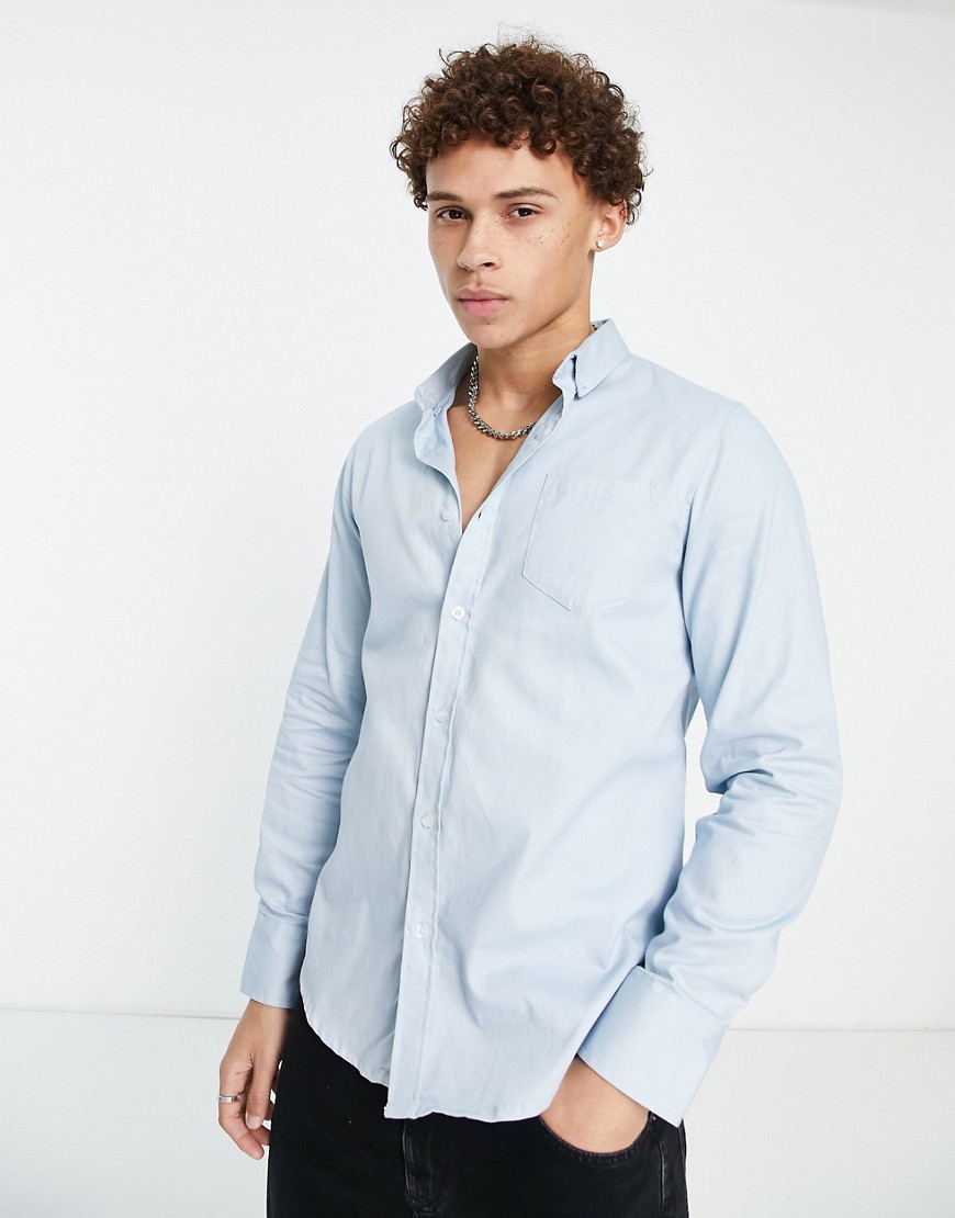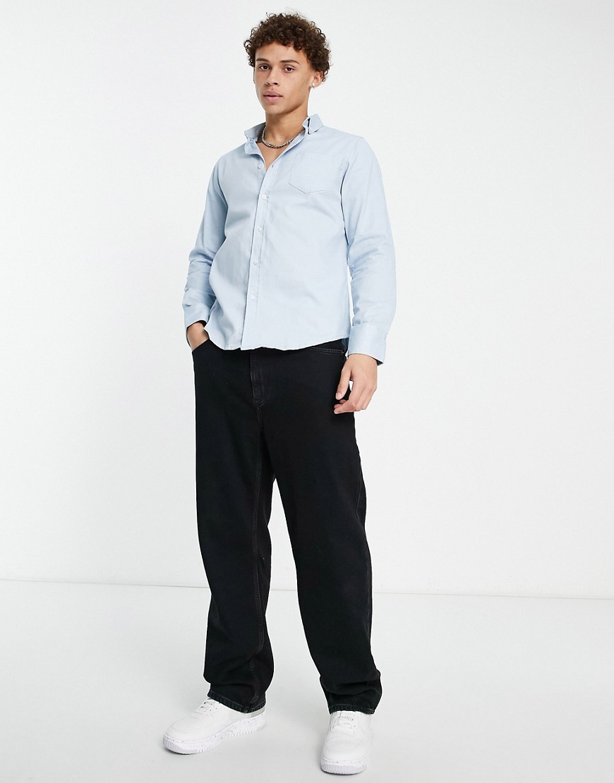 Brave Soul Pastelowoniebieska koszula z długimi rękawami z bawełnianego diagonalu defeky L