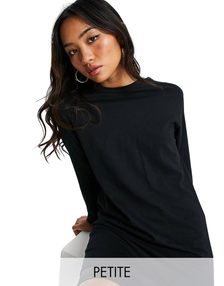 Brave Soul Petite czarna sukienka t-shirtowa mini długi rękaw 32