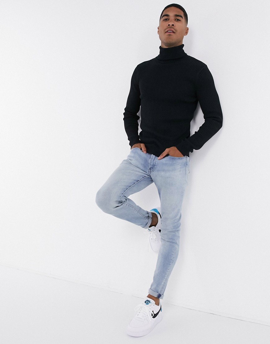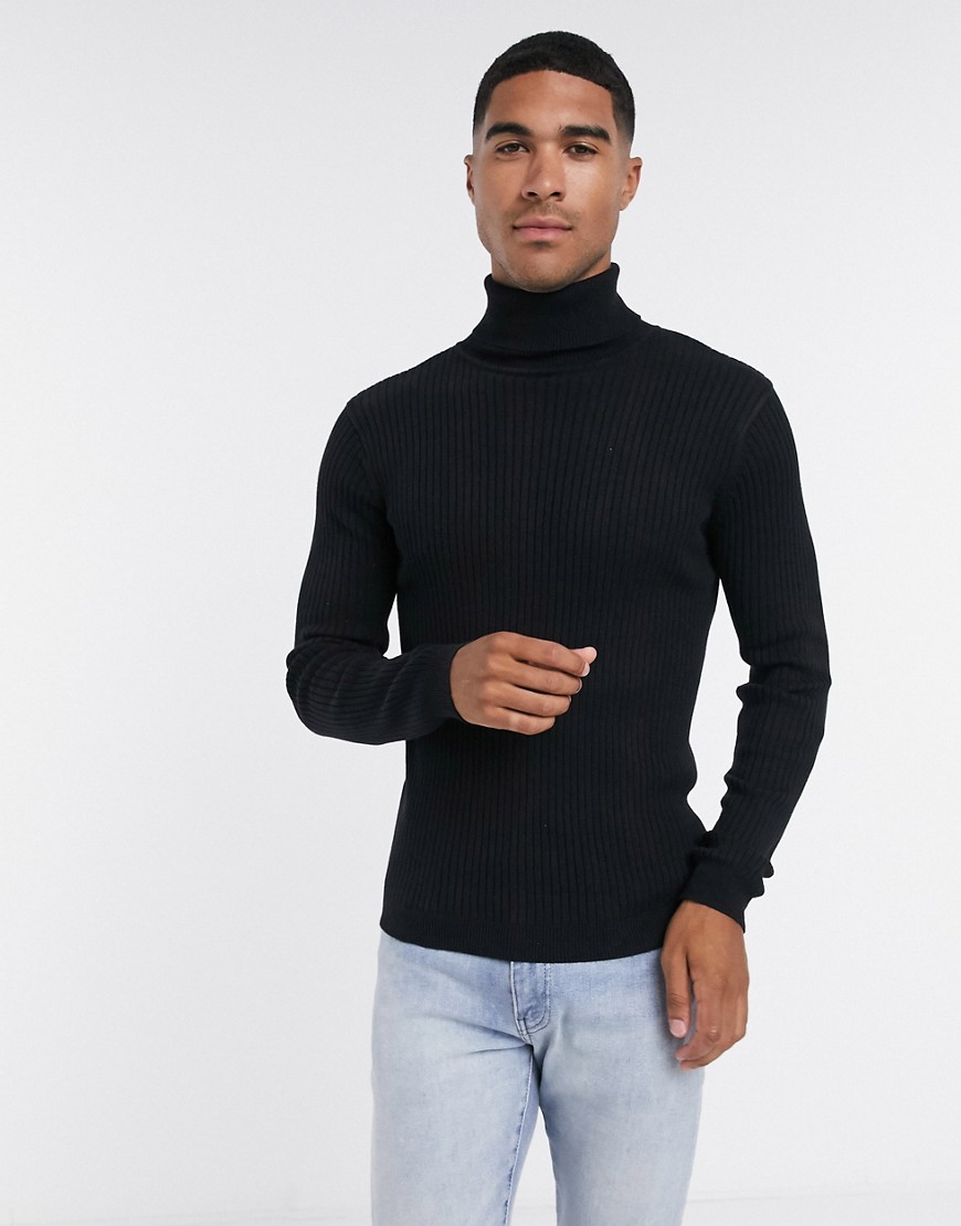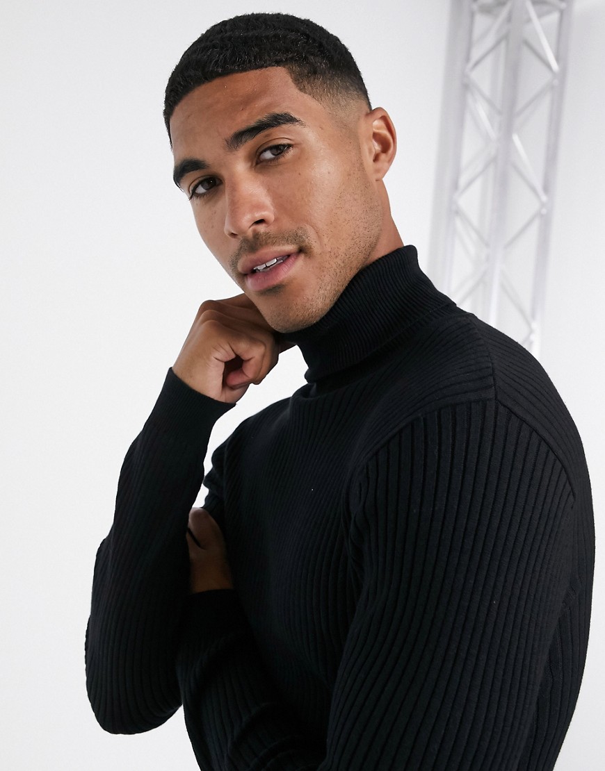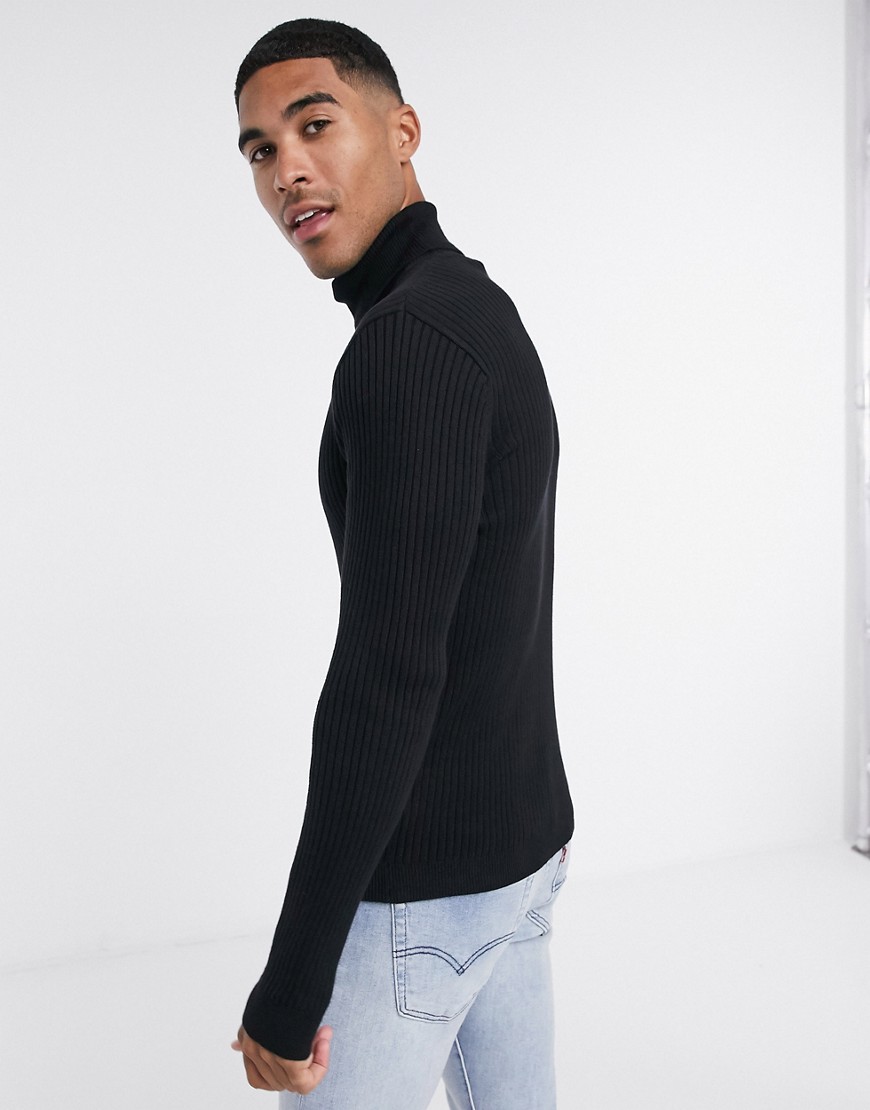 Brave Soul – Sweter z prążkowanej dzianiny z golfem z 100% bawełny XL